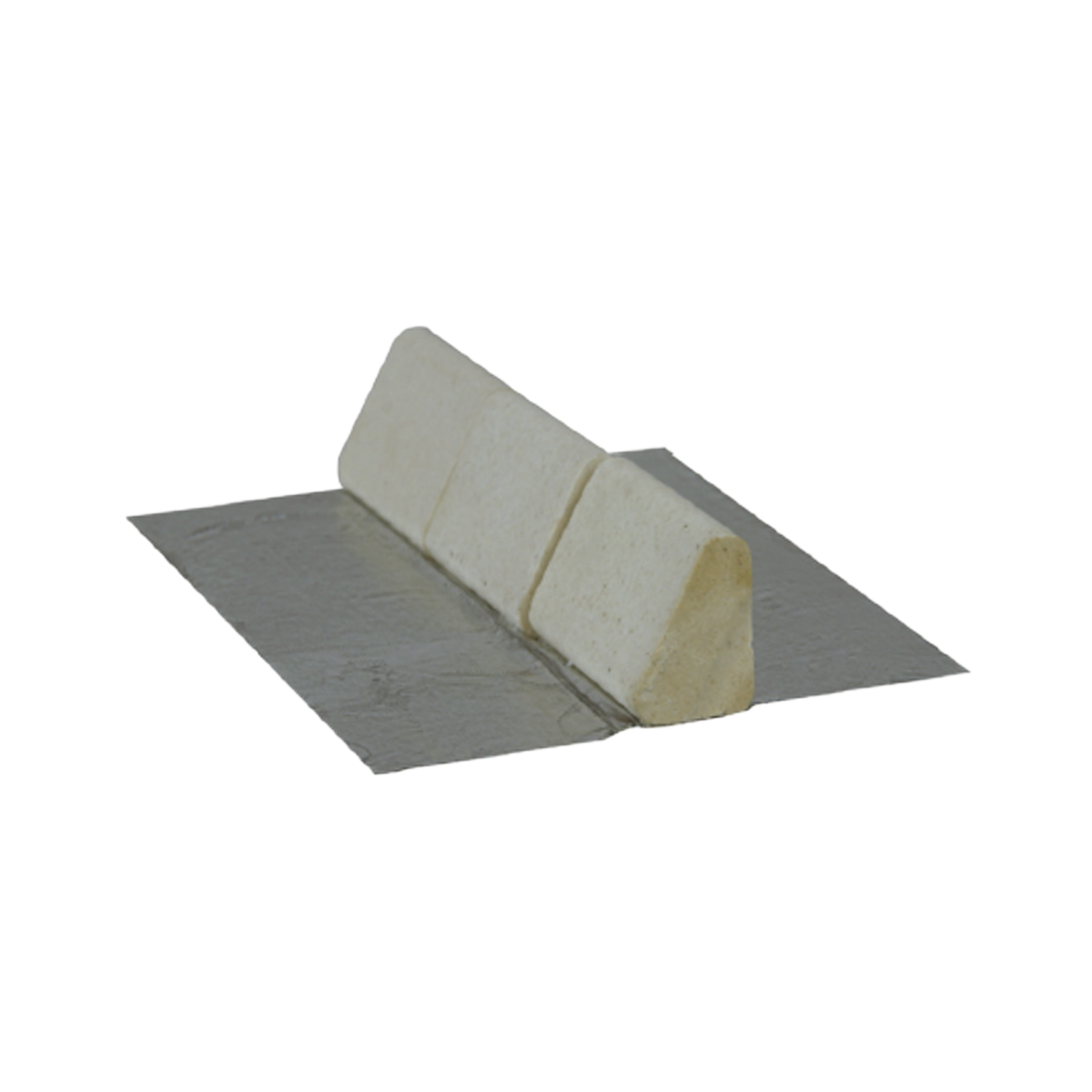 Keramisch onderlegmateriaal type WK 8064 op aluminium plakstrip 600 mm lang en bestand tegen hoge temperaturen. Driehoekige uitvoering met 30, 60 en 90 graden hoek, langste zijde 18 mm.
