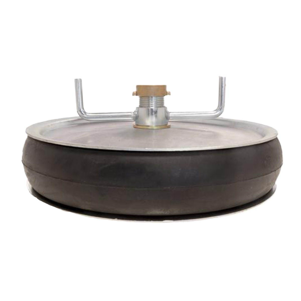 Pijpstopper 12” inch met doorlaat, stalen (of aluminium) drukplaten, vleugelmoer en enkele rubberen ring, alle afsluitstoppen met doorlaat worden geleverd met afsluitkap.